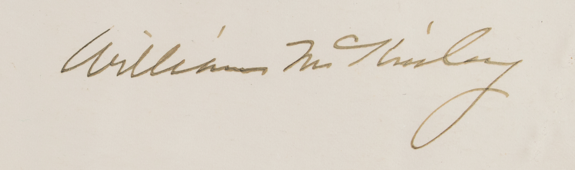Partly-printed DS as president, one page, 21.25 x 16.25, September 20, 1900. President McKinley appoints Harry W. Graham as a "Second Lieutenant of Infantry in the service of the United States." Signed neatly at the conclusion by William McKinley, and countersigned by Acting Secretary of War Henry Clark Corbin. Original blue War Office seal remains affixed to the lower left corner. In very good to fine condition, with creasing the side edges.