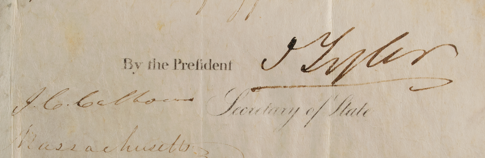 John Tyler and John C. Calhoun Document Signed as President and Secretary of State