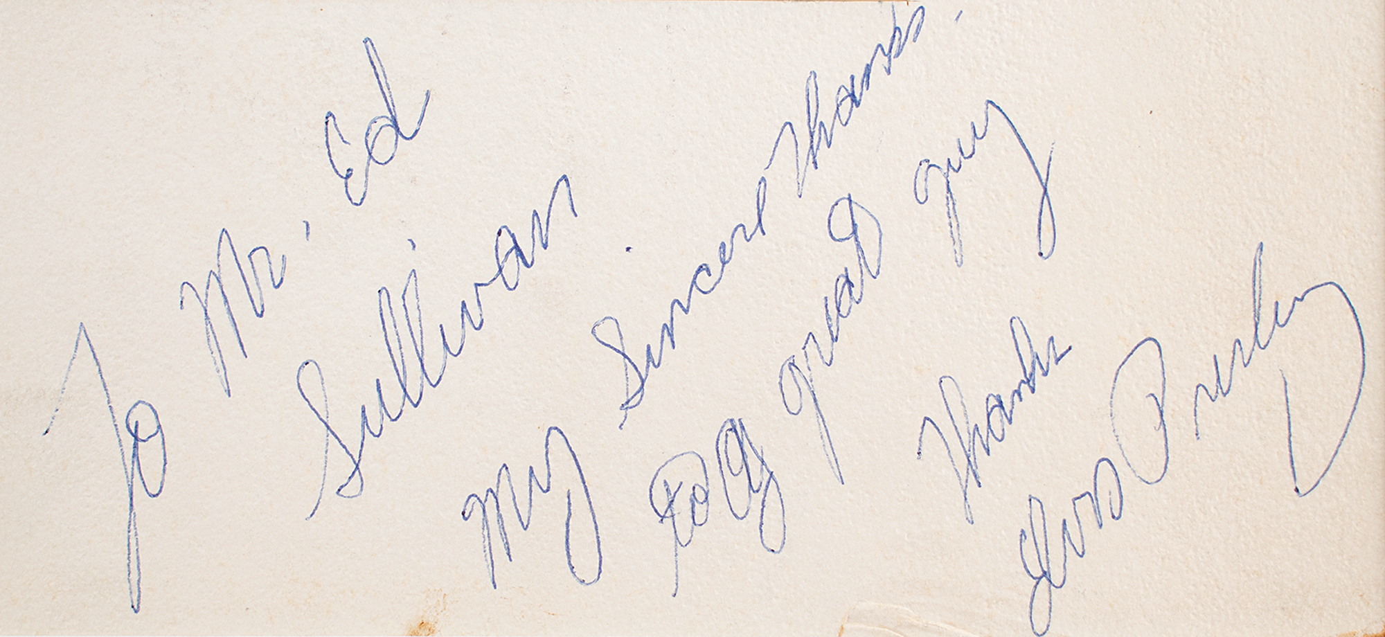 Incredible color semi-glossy 11 x 14 close-up photo of Elvis as he was pictured on the September 1956 front cover of TV Guide, signed and inscribed on the original 'TV Guide Cover Portrait' mat in black ballpoint, "To Mr. Ed Sullivan, My sincere thanks to a great guy, Thanks, Elvis Presley.” Attractively matted and framed to an overall size of 23.5 x 27. In fine condition.