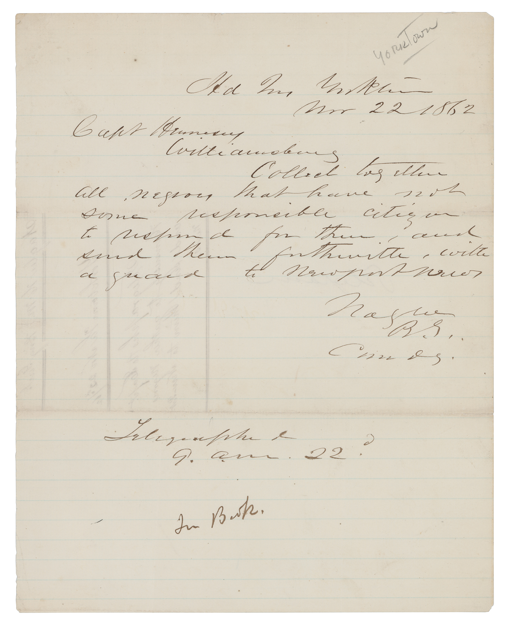 "Collect together all negroes"—scarce 1862 letter from Yorktown