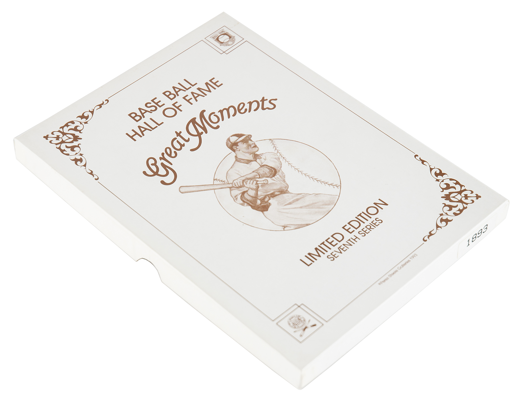 Limited edition group of Perez-Steele Baseball Hall of Fame 'Great Moments' (Series 7) oversized art cards, numbered 1,893/10,000, with eight signed in blue felt tip. Signers are: Tom Seaver, Rollie Fingers, Ralph Kiner, Rod Carew, Gaylord Perry, Hal Newhouser, Early Wynn, and Bob Feller. In overall fine condition. Accompanied by the original box and four unsigned cards.