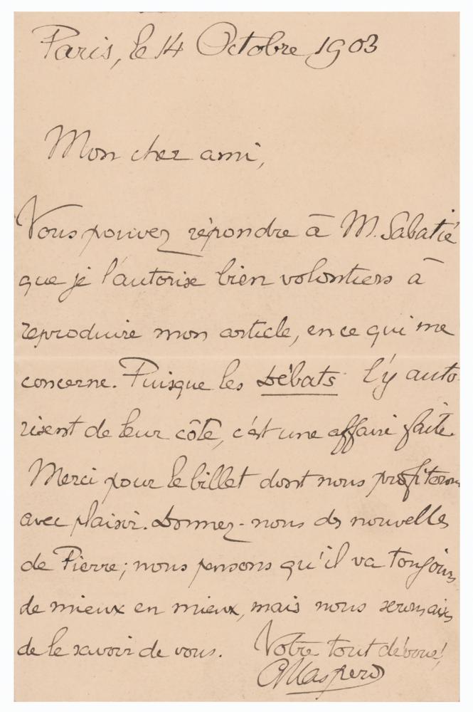 Gaston Maspero Autograph Letter Signed