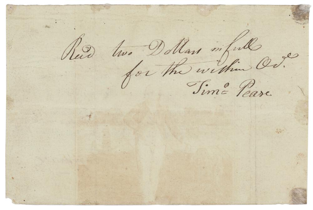 French Naval officer and explorer whose expedition vanished in Oceania (1741-c. 1788). Rare manuscript DS in French, signed “Laperouse,” one page, 6 x 4, August 19, 1781. Financial document, in part (translated): "I beg Mr. Green to give two dollars to the American people carrying this ticket." Laperouse adds the penultimate line in his own hand. The reverse is endorsed with a statement that the monies were received. In fine condition, with a few light stains.