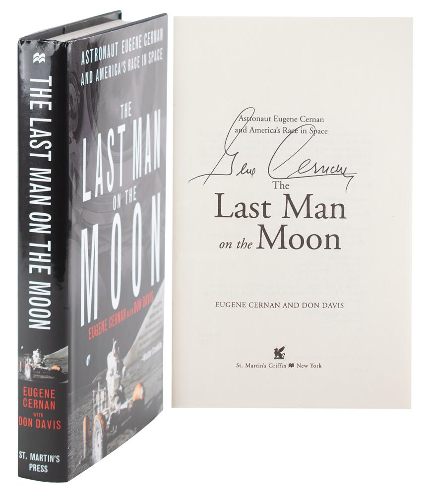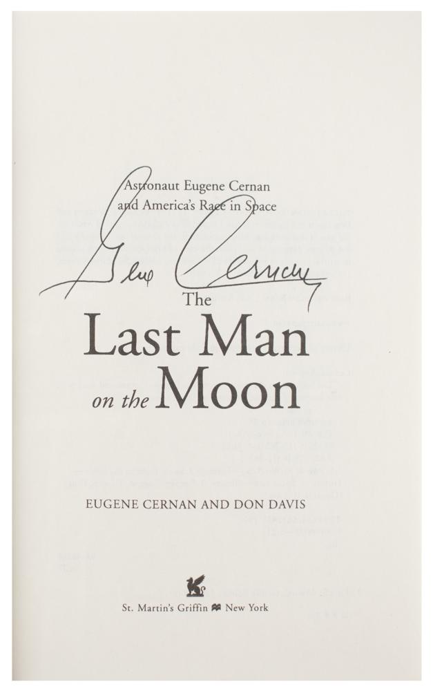 Signed book: The Last Man on the Moon. First St. Martin's Griffin Edition. NY: St. Martin's Griffin, 2000. Hardcover, 6.5 x 9.5, 356 pages. Signed on the title page in black ink by Gene Cernan. In fine condition.