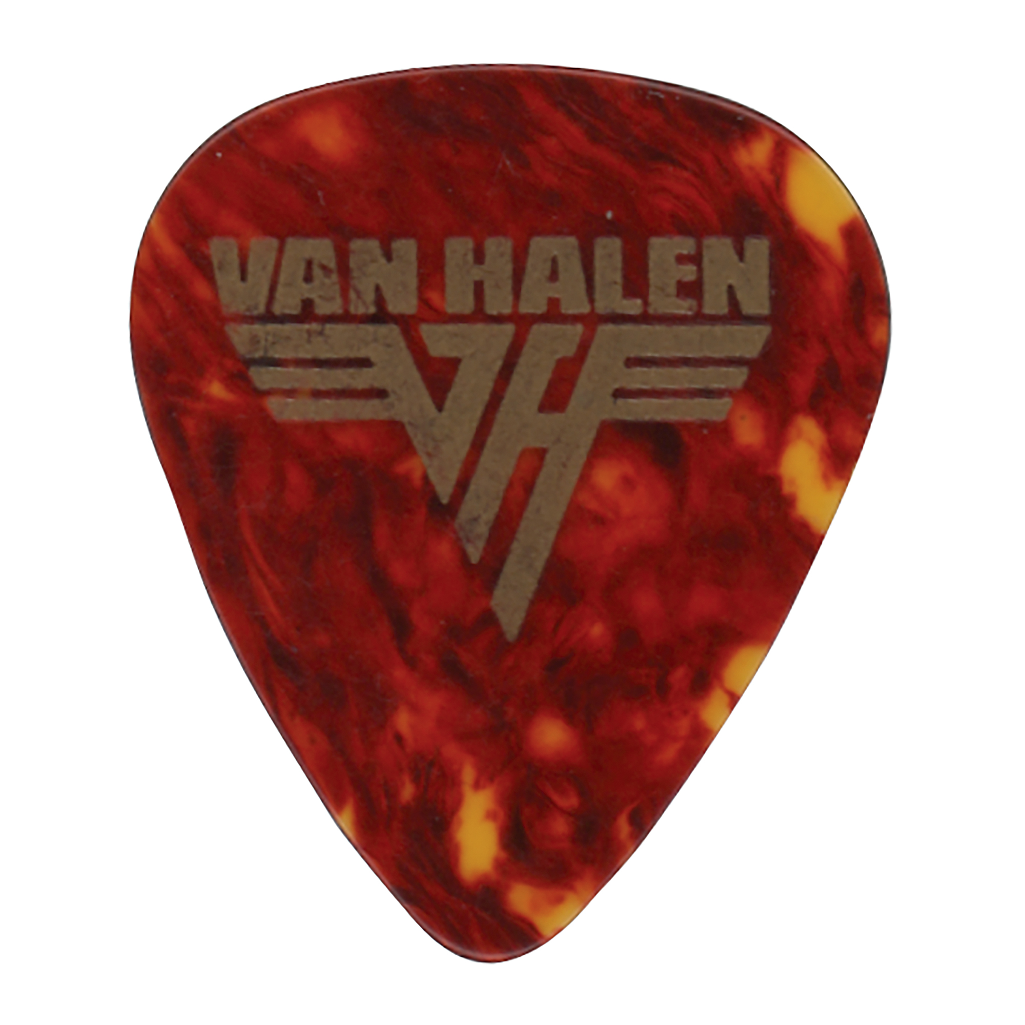 Sought-after Van Halen guitar pick used on stage by Eddie Van Halen during the band?s 1982 Diver Down Tour. The bronze tortoise shell pick bears the golden Van Halen name and logo to the front with a blank reverse. Included with the pick is an ALS signed ?Ed,? one page, 4.25 x 5.25, Hotel Parker, Meridien, New York stationery, no date (circa 1980s), addressed to Van Halen?s publicist Steve Mandel, in full: ?If I?m not here I?m in Gene?s room 1521?the elevators are across from the front desk.? In overall fine condition, with some folds and creases to letter. Accompanied by a full letter of authenticity from REAL, as well certificates of authenticity signed by Mandel, who affirms that the pick and letter derive from his personal collection.