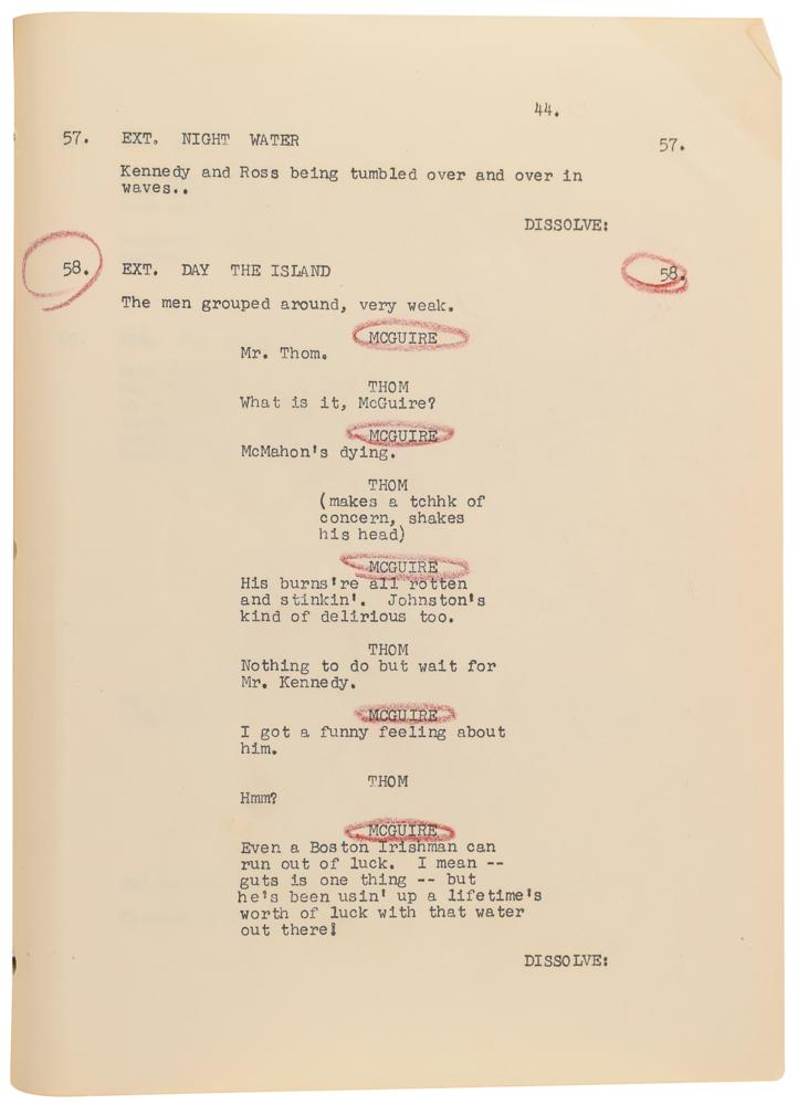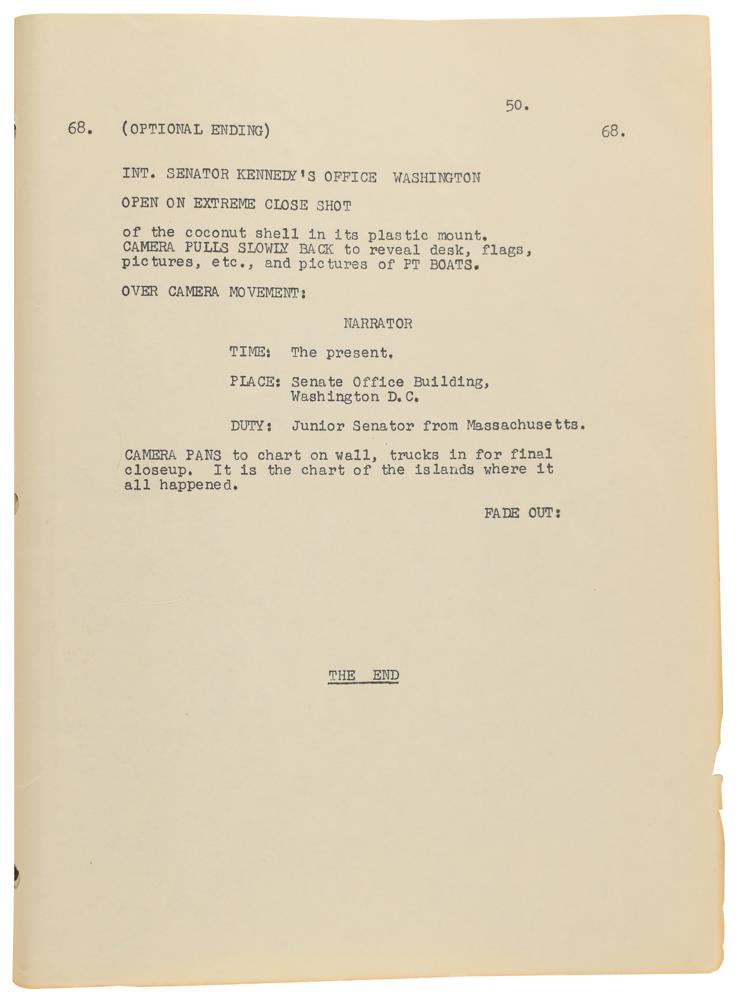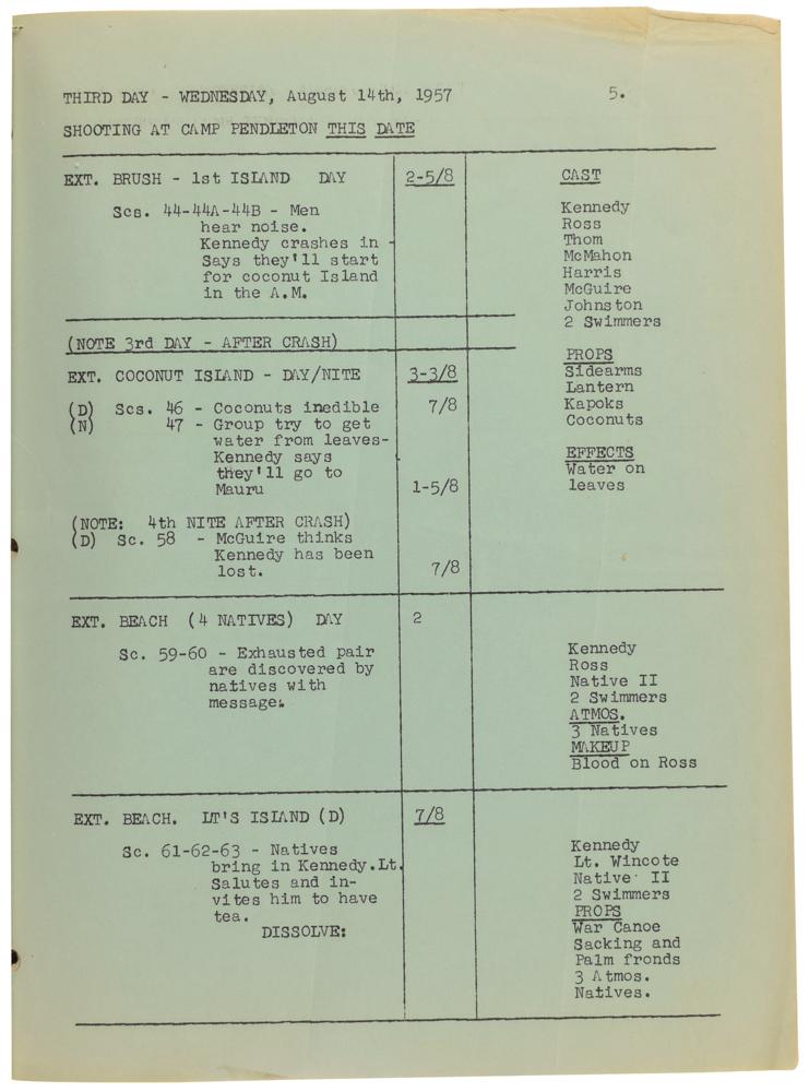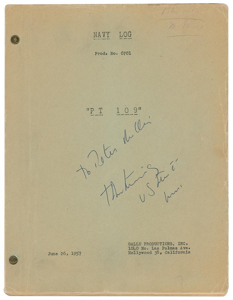 - Original June 25, 1957 shooting script from “Navy Log” television series signed “To Peter Miller, John Kennedy US Senator, Mass.” who played McGuire