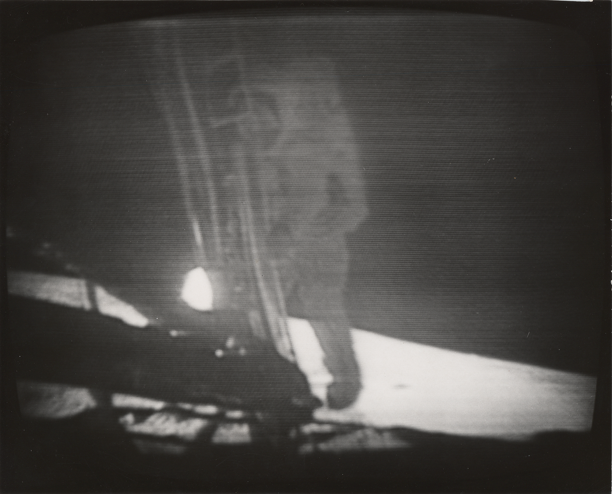 The inner fourth page is signed by six Space Shuttle astronauts—Clayton Anderson, Karol Bobko, Nicole Stott, Jerry L. Ross, Robert ‘Hoot’ Gibson, and Rhea Seddon—and record-holding RKA cosmonaut Gennady Padalka, with each adding mission designations. Includes a vintage glossy 10 x 8 photo of Armstrong taking his first lunar step, with the reverse bearing a “Fred Dudley Photography” stamp and marked #1 (includes original mailing envelope). In fine condition. Accompanied by certificates of authenticity from Novaspace and Aurora Galleries for the Scott, Collins, Schmitt, Cernan, and Haise autographs. Comes with CD-Rom with photos of 32 of the signers. CD also includes autograph key to all signatures with approximate dates of signatures.