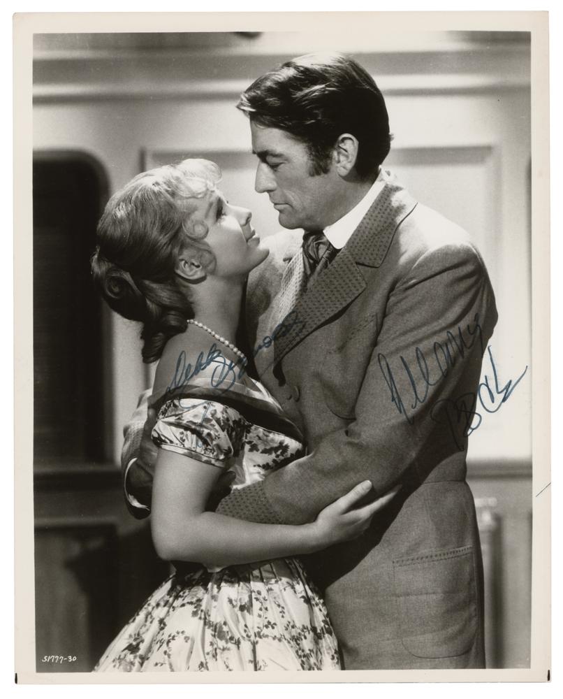 Glossy 8 x 10 photo from John Ford's 1962 epic How the West Was Won, signed in black felt tip by Gregory Peck and Debbie Reynolds. In fine condition.