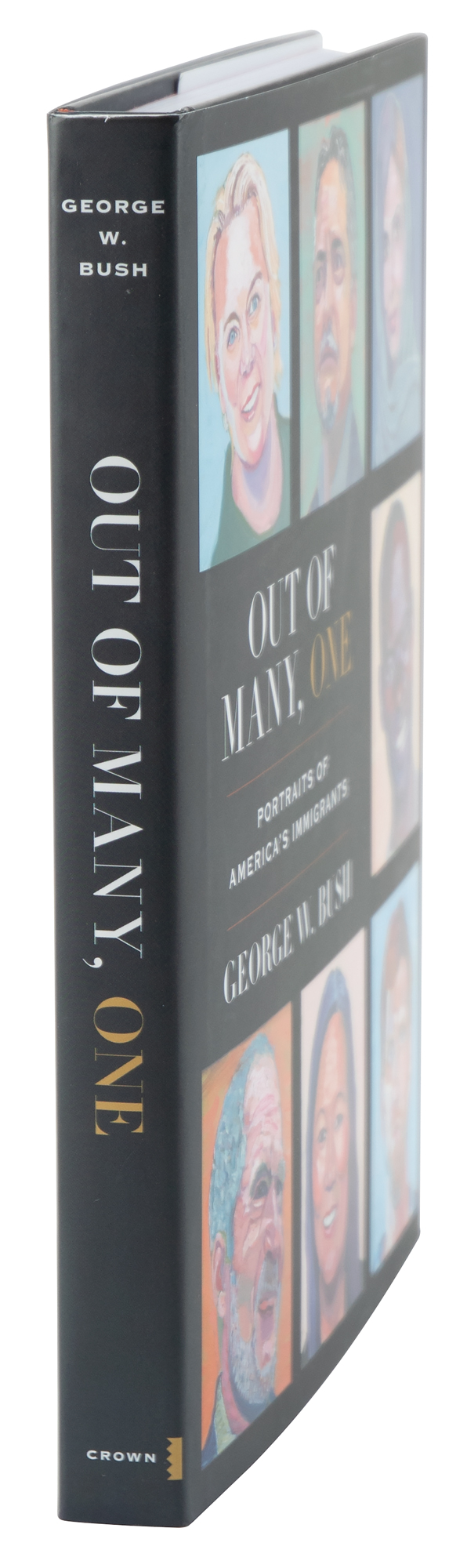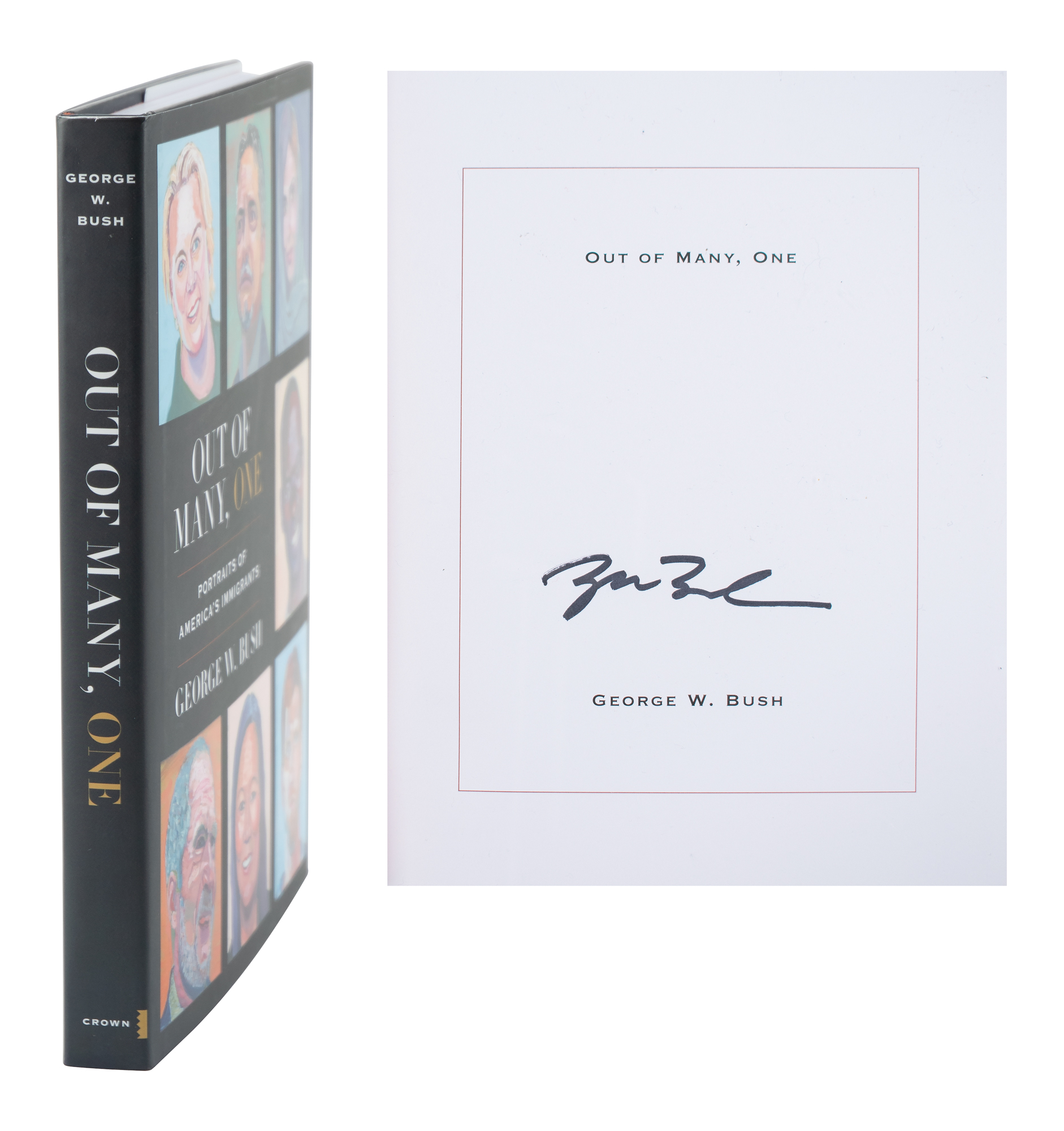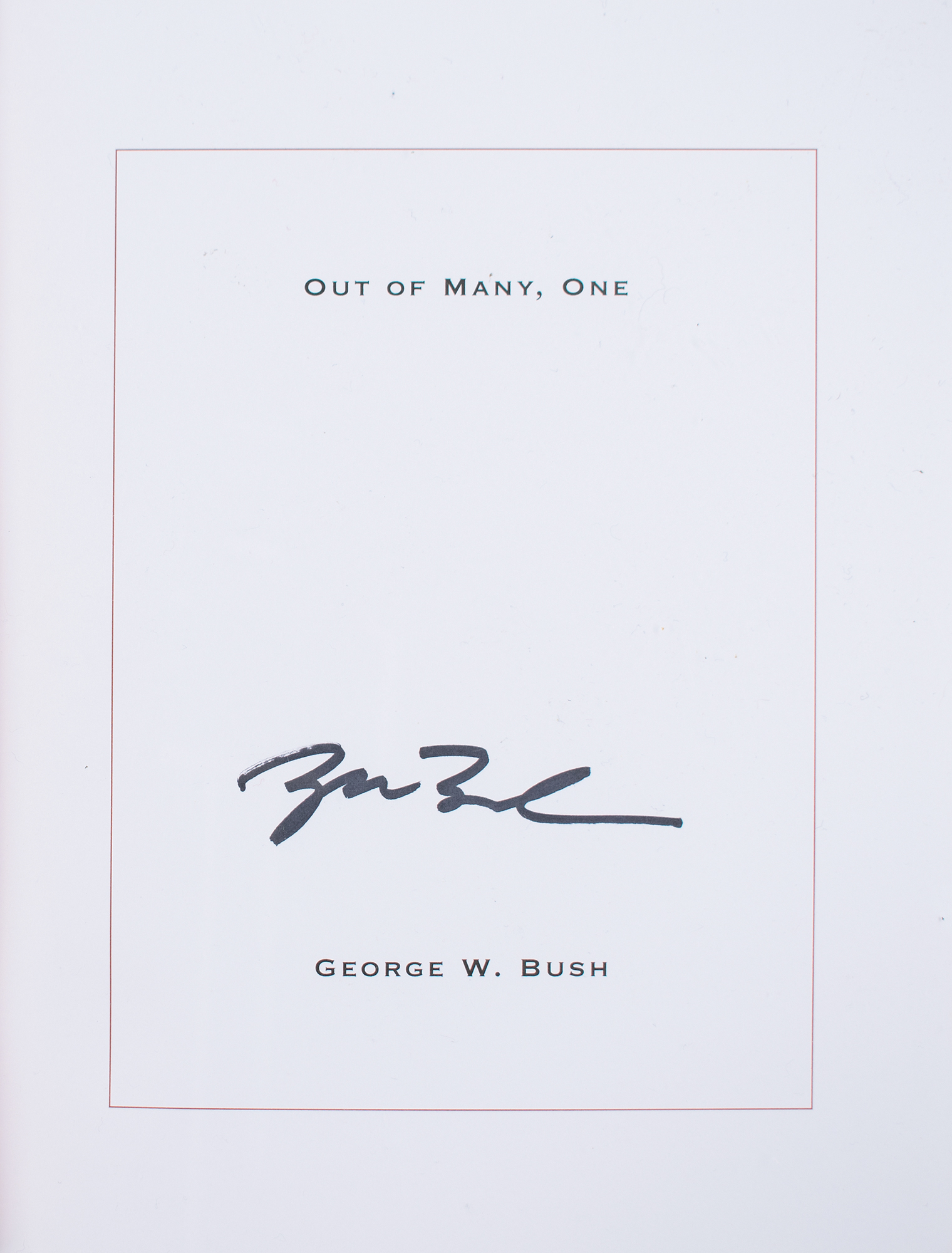 Signed book: Out of Many, One. First edition. NY: Crown Publishers, 2021. Hardcover with dust jacket, 8.5 x 10.25, 208 pages. Signed on the half-title page in black felt tip by George W. Bush. In very fine condition.
