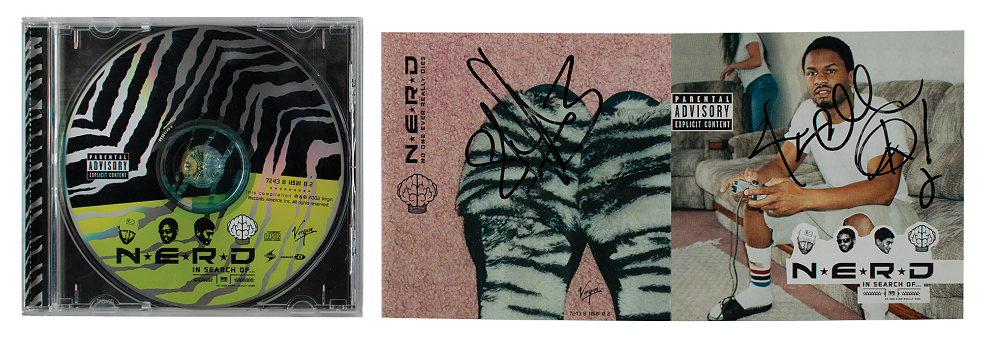In Search of… CD by N.E.R.D., signed on the booklet in black felt tip by Pharrell Williams and Shay Haley. In fine condition. The CD is included.