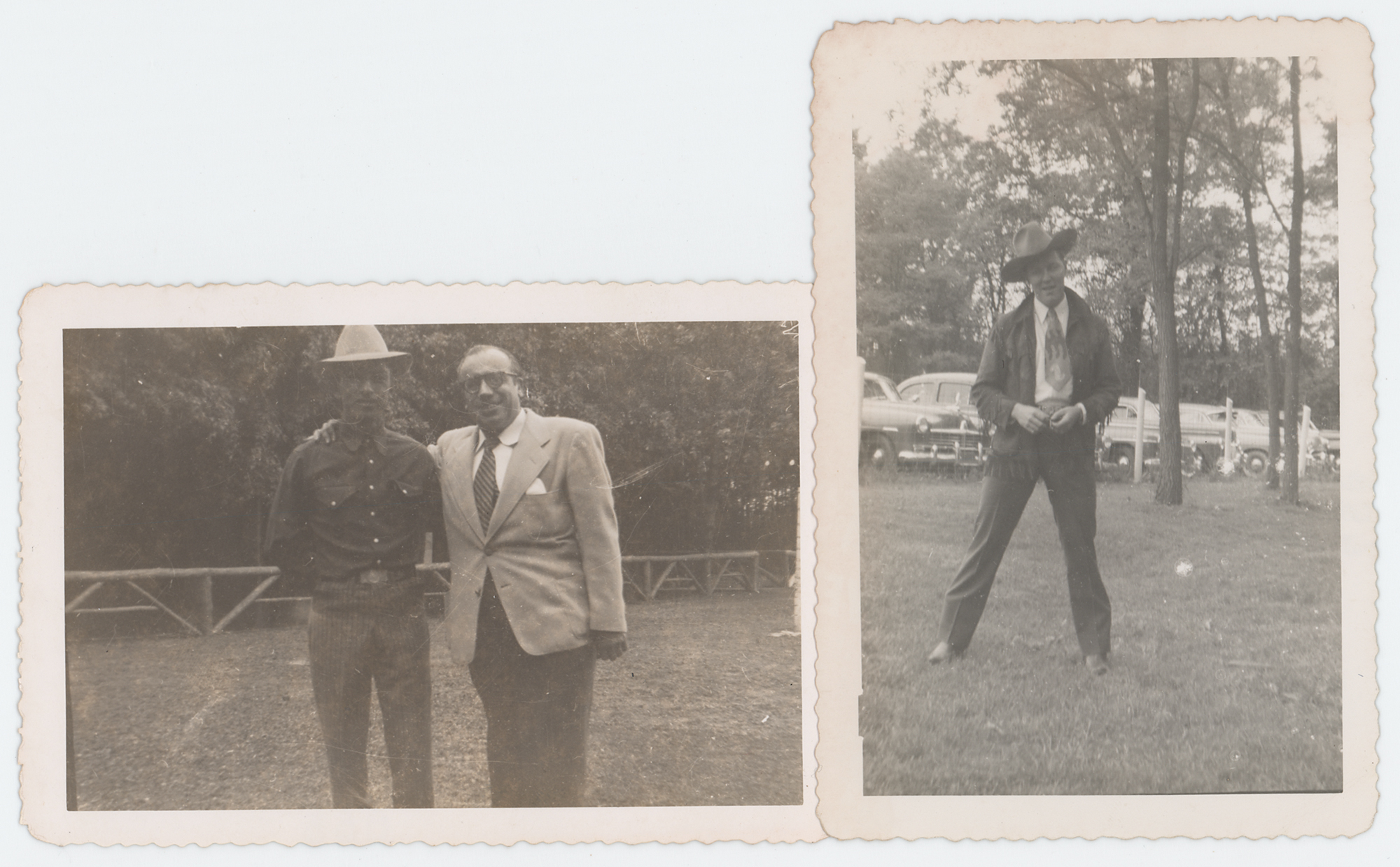 Rare original color 14 x 22 poster for Bill Haley and His Comets at the Palace Ballroom, Old Orchard Beach, Maine, on May 28, 1957. Printed in mustard-yellow, red, and black on heavyweight cardstock, the poster advertises the classic rock 'n' roll group as "The Shake Rattle and Roll Boys," listing their hit singles "Rip It Up," "See You Later Alligater [sic]," "Rock Around the Clock," "Shake Rattle and Roll," and others. In fine condition. Accompanied by two original vintage glossy candid photos: one of Bill Haley during his time at the Radio Station WPWA in Chester, Pennsylvania; and one of Albert Clements and Lee Stewart of WHAT.