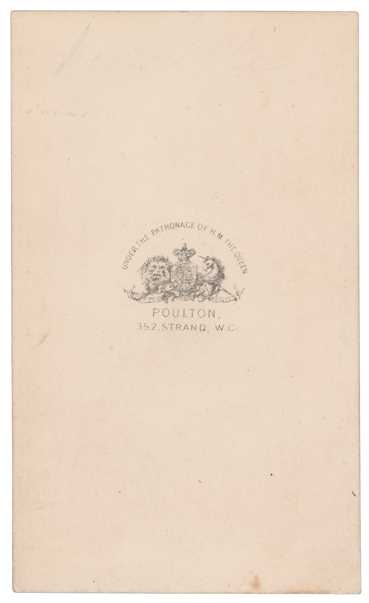 Appreciably scarce 2.5 x 4 carte-de-visite portrait of Benjamin Disraeli, signed in black ink, "B. Disraeli." Published by Poulton of London. In fine condition, with scattered foxing. Our first signed photo of the twice-serving Prime Minister of the United Kingdom.
