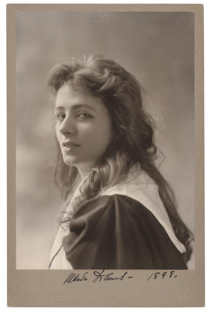 American actress (1872-1953) who achieved her greatest success as the character Peter Pan, first playing the role in the 1905 Broadway production of Peter Pan; or, The Boy Who Wouldn't Grow Up. Scarce original 4.26 x 6.5 cabinet card portrait of Maude Adams looking over her shoulder, signed on the mount in black ink, "Maude Adams-1898." Published by the Pach Bros. of New York. In very fine condition.
