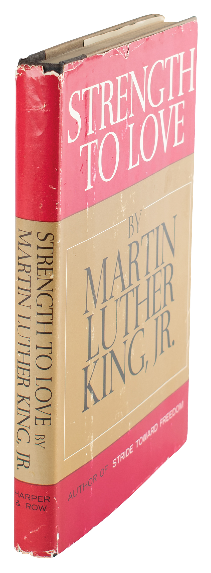 Published in 1963, Strength to Love is a collection of Martin Luther King, Jr.'s sermons on the topic of racial segregation in the United States and religious values. Dr. King was awarded the Nobel Peace Prize in 1964 for being the 'first person in the Western world to have shown us that a struggle can be waged without violence.' A handsomely signed compilation of King's addresses, with a great inscription evoking his Christian ideals as a Baptist minister.