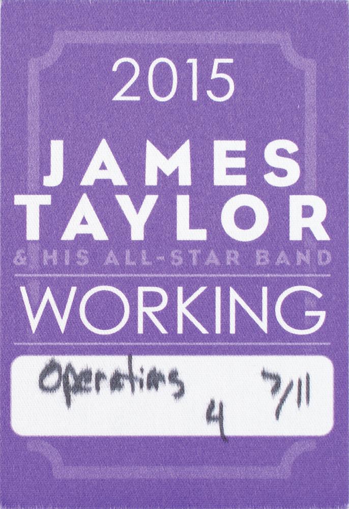 Greatest Hits CD by James Taylor, who has signed the front cover in black felt tip. In fine condition. The CD is included. Accompanied by an unused 'working' backstage pass for a James Taylor concert on July 11, 2015, the date the autograph was obtained.