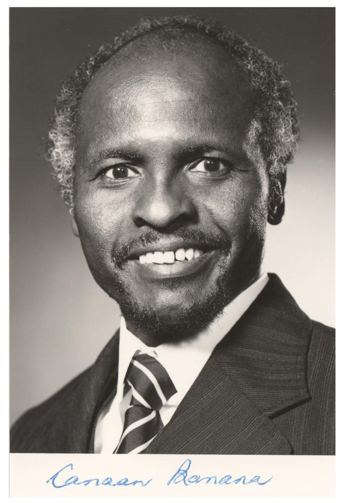 The first President of Zimbabwe (1936-2003) who, in 1987, stepped down as President and was succeeded by Prime Minister Robert Mugabe. In 1997, Banana was accused of being a homosexual, and after a highly publicized trial, was convicted of 11 counts of sodomy and ‘unnatural acts,’ serving six months in prison. Pearl-finish 3.5 x 5.5 close-up photo of Canaan Banana, signed in the lower border in blue ballpoint as president of Zimbabwe. In fine condition, with a light paperclip impression to the top edge. Accompanied by a 1980 transmittal letter from the 'Office of the President.'