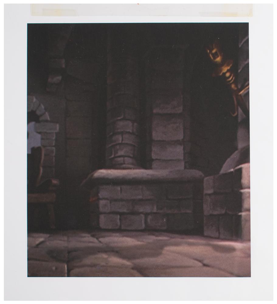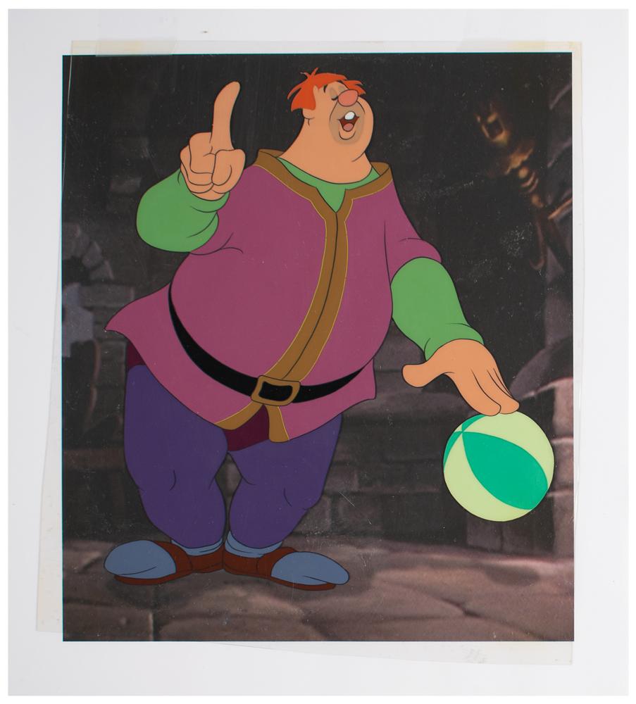 (Walt Disney Studios, 1947) Original production cel featuring Willie the Giant from the 'Mickey and the Beanstalk' segment of Fun and Fancy Free, showing him bouncing his big green ball. The cel is placed on a matching studio copy background. Image measures 5.75 x 6.5, with overall dimensions of 8 x 8.75. In fine condition.