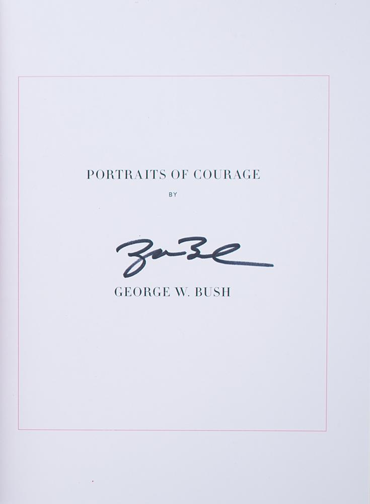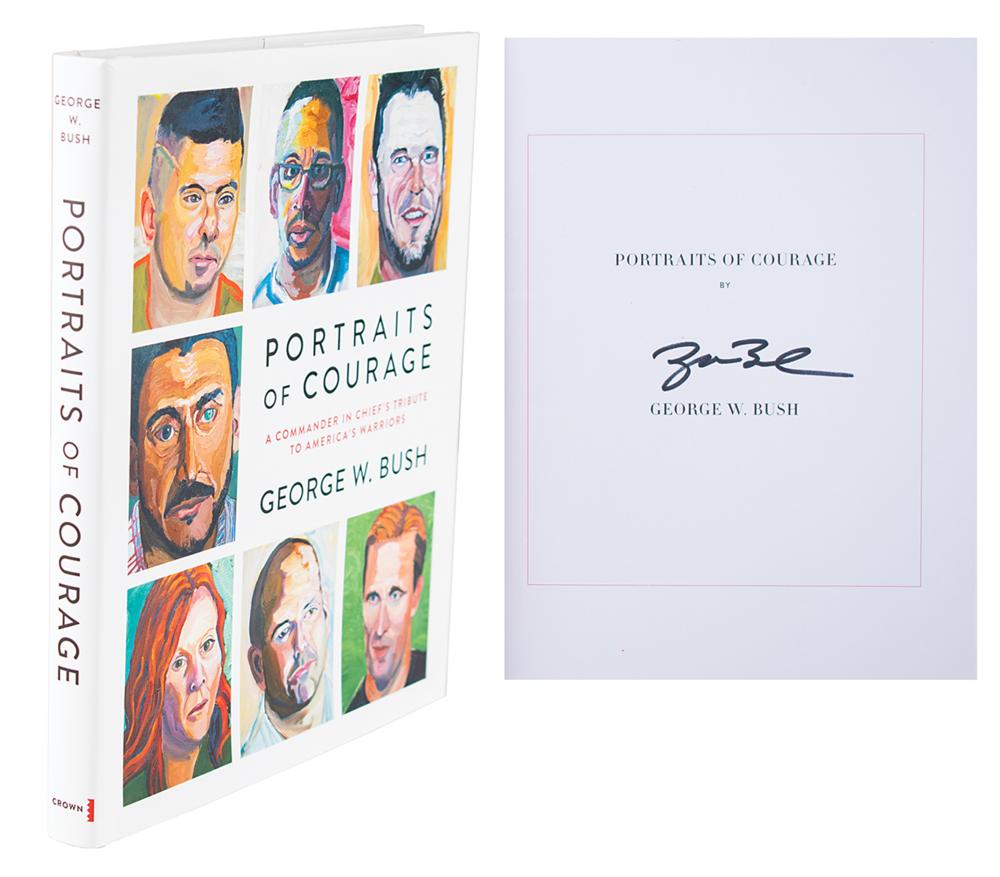 Signed book: Portraits of Courage. First edition. NY: Crown Publishers, 2017. Hardcover with dust jacket, 8.5 x 10.25, 191 pages. Signed on the half-title page in black felt tip by George W. Bush. In very fine condition.