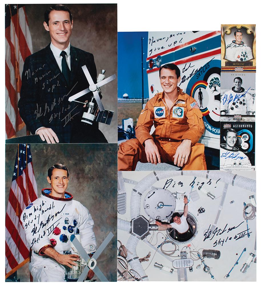 Seven items signed in black felt tip by Bob Crippen, including: four different 8 x 10 photos; and three Panini trading cards. In overall very fine condition.