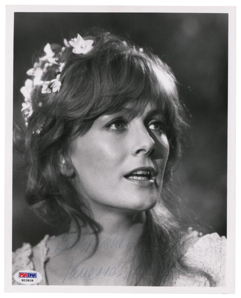 Glossy 8 x 10 close-up photo, signed in blue ballpoint, "Best wishes, Vanessa Redgrave." In fine condition, with a PSA/DNA label affixed to the lower corner (certificate of authenticity not present).