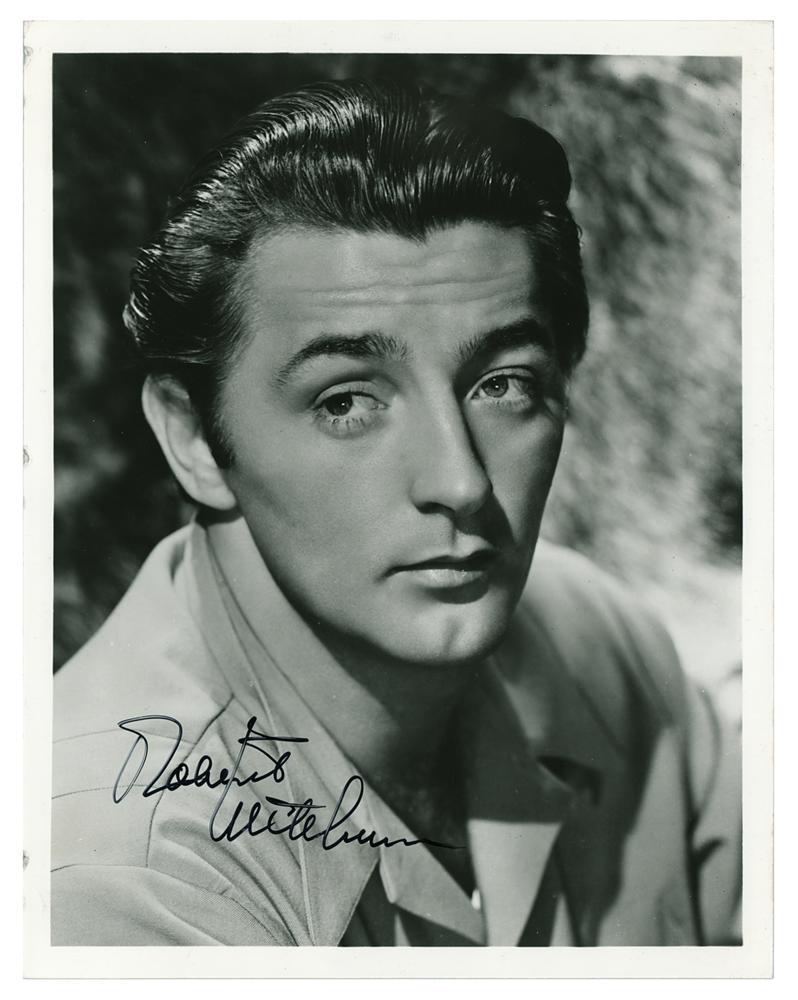 Glossy 8 x 10 head-and-shoulders photo of the clean-cut Mitchum, signed in black felt tip. In fine condition.