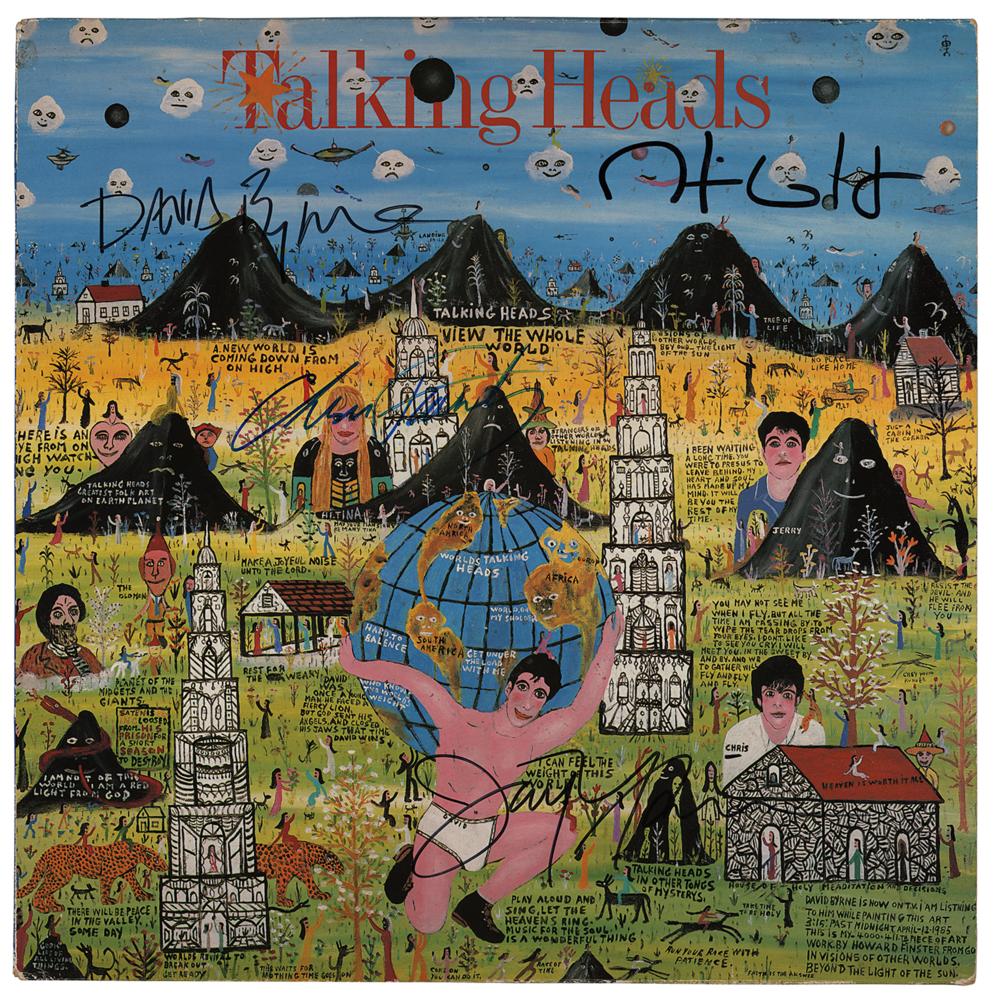 Little Creatures album signed on the front cover in felt tip by David Byrne, Chris Frantz, Tina Weymouth, and Jerry Harrison. In fine condition, with scattered small stains to the front cover. The record is not included.
