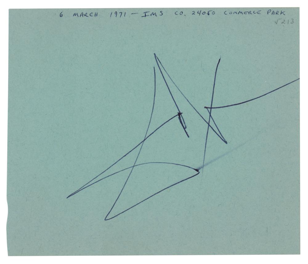 Ballpoint signature, "Dali,” on a blue 5.25 x 4.5 album page, annotated along the top by the collector: "6 March 1971 - IMS Co. 24050 Commerce Park." In very fine condition.