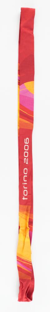 Stunning winner's medal from the Torino 2006 Winter Olympics. Silver, 470 gm, 108 mm, designed by Quatrini and minted by Ottaviani International. The front features a fluid geometric design of the emblem of the Games at the bottom; the reverse has a polished pictogram of the sport—figure skating—and is engraved with the event, "Mixed Ice Dancing." The edge is engraved in Italian, French, and English: "XX Giochi Olimpici Invernali, XX Jeux Olympiques d'Hiver, XX Olympic Winter Games." The uniquely designed medal has a hole at the center, through which the red, gold, and fuschia ribbon is tied. Complete with its original wood-and-plastic curved display case and cardboard box, which is creased. At the time, the Torino winner's medal was the largest ever issued.