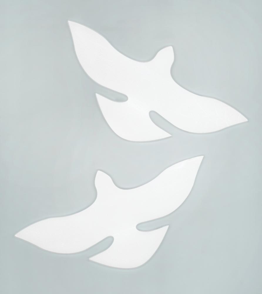 Two white foam doves that were dropped from the top of the Olympic Stadium during the opening ceremony of the Tokyo 2020 Summer Olympics. Both doves measure 8.5″ x 4.25″. In overall fine condition, with a crease to one wing.