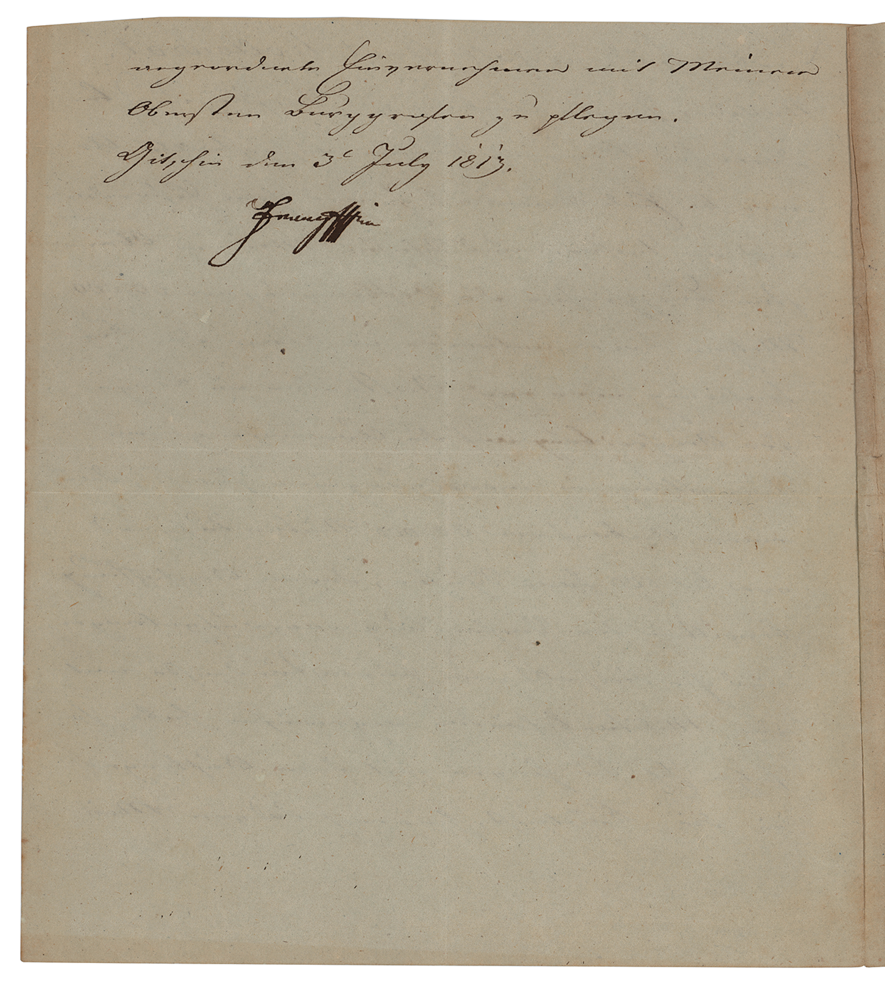 The last Holy Roman Emperor (1768-1835) who ruled from 1792 to 1806, when he dissolved the empire and became the first Emperor of Austria. LS in German, one page both sides, 7.5 x 8.5, July 3, 1813. Untranslated letter signed at the conclusion by Francis as Emperor of Austria. In fine condition, with trimmed edges.