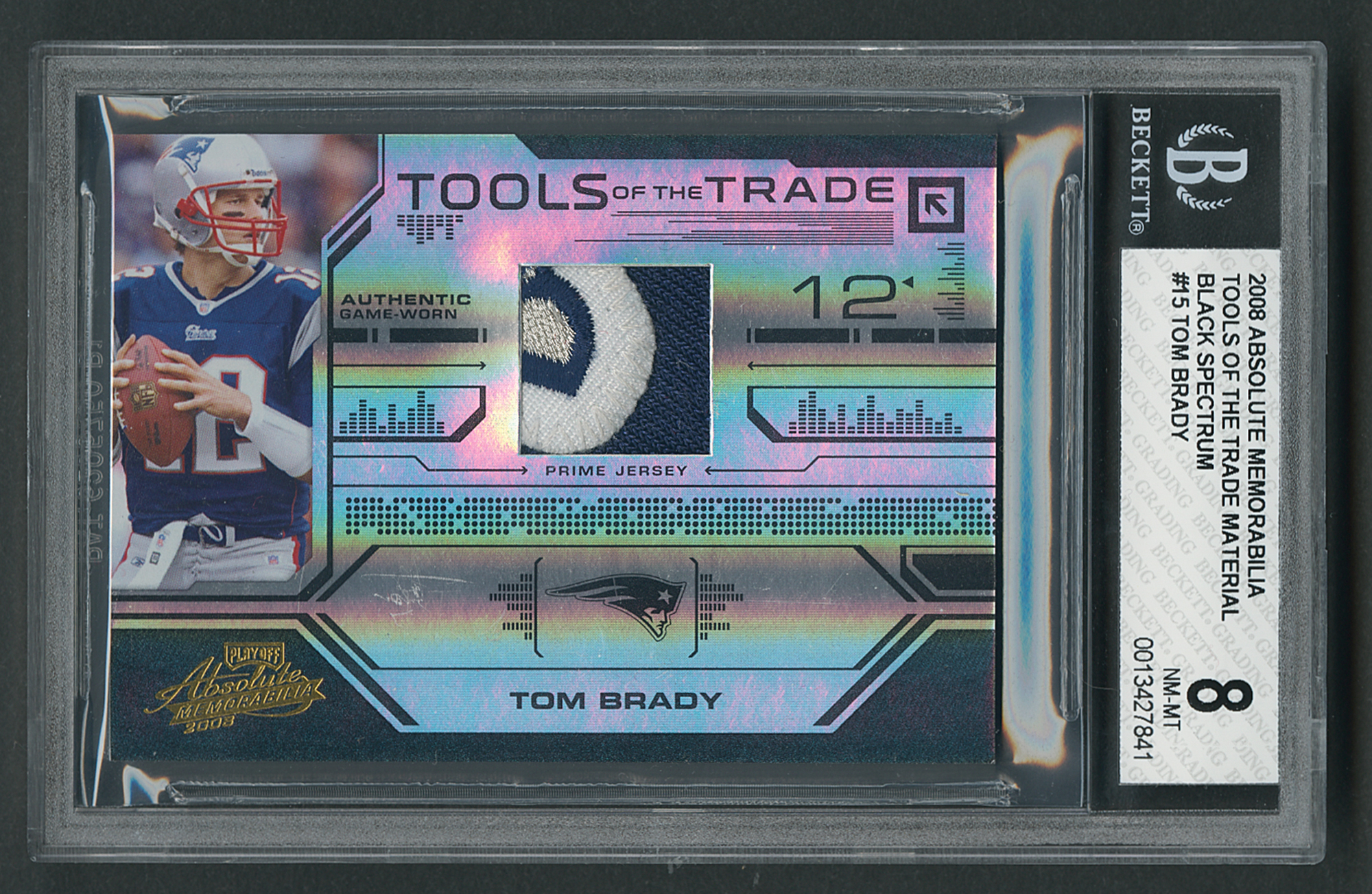 2008 Absolute Memorabilia Tools of the Trade Material Black Spectrum Tom Brady Patch (25/50) BGS NM-MT 8 Football Card