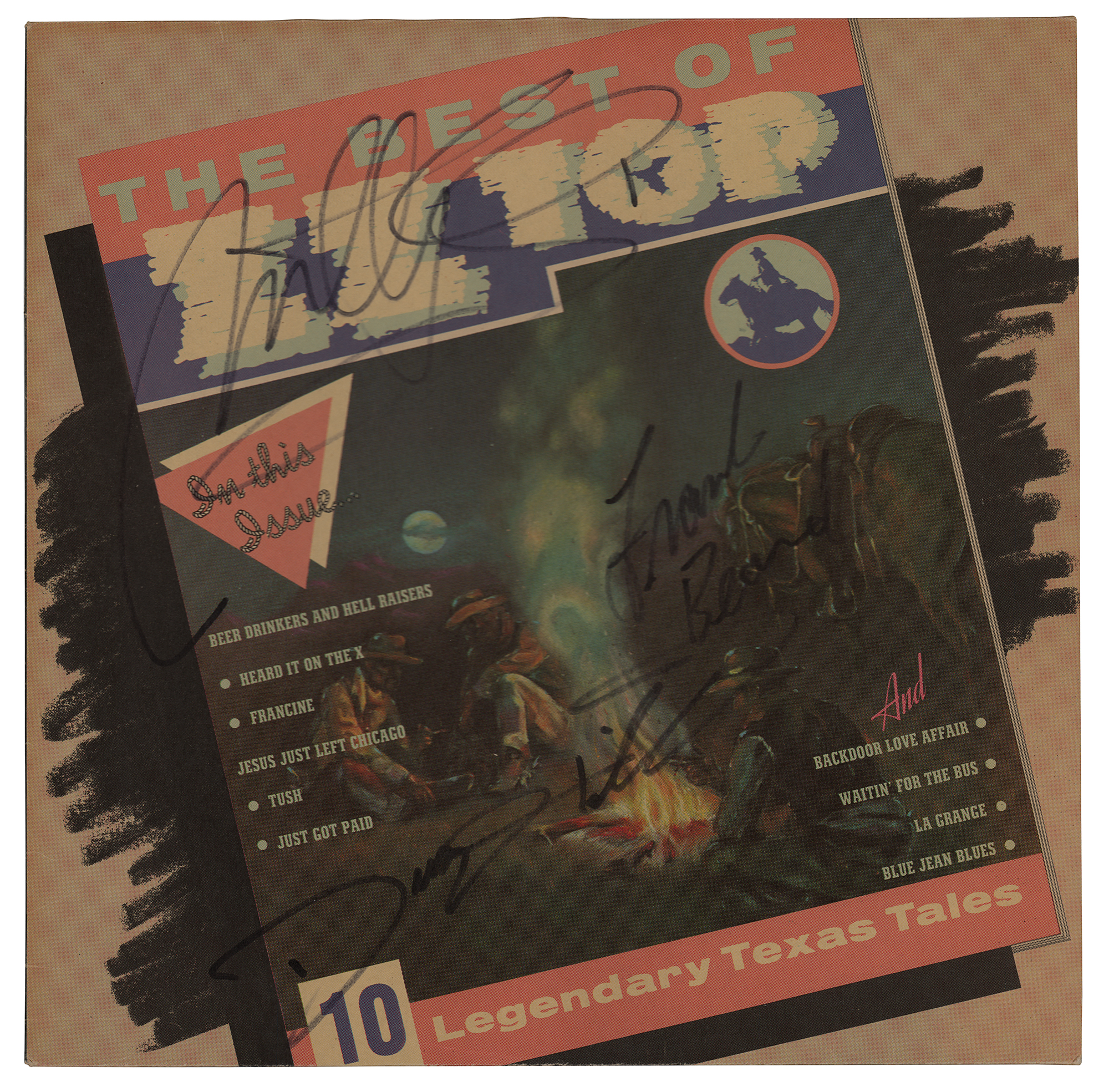 The Best of ZZ Top compilation album signed on the front cover in black felt tip by Billy Gibbons, Dusty Hill, and Frank Beard. In very fine condition. The record is included.