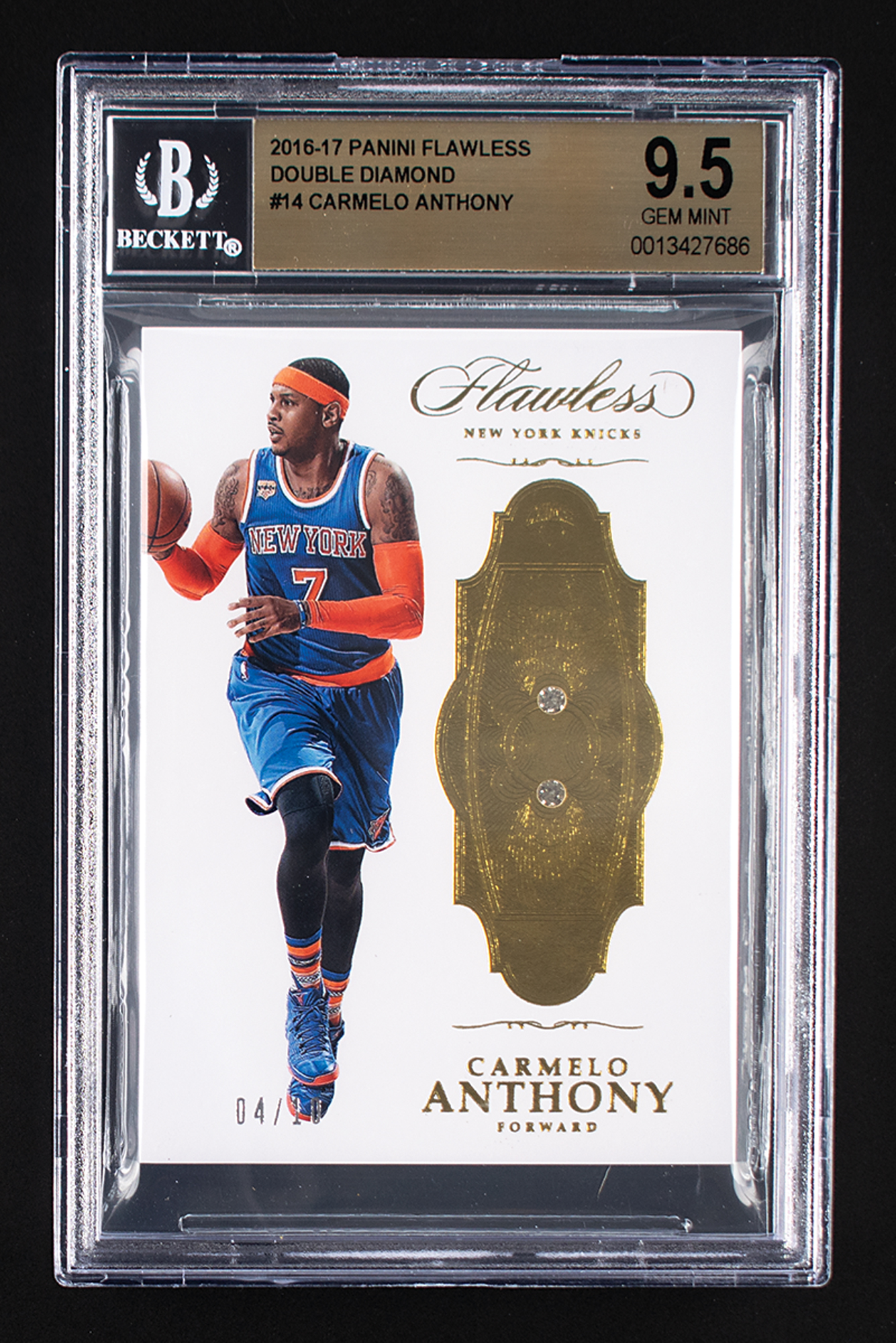 Graded by BGS GEM MINT 9.5. Superb card of accomplished New York Knicks forward Carmelo Anthony, numbered 4/10, featuring two small embedded diamond gemstones.