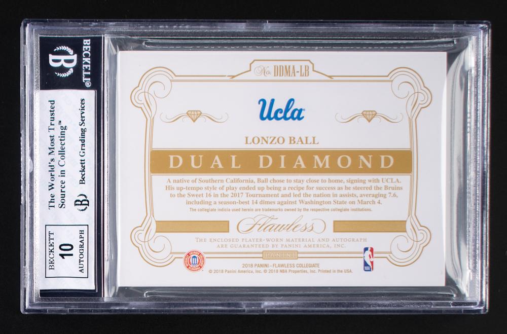 2018-19 Panini Flawless Collegiate Dual Diamond Lonzo Ball Patch (21/25) BGS NEAR MINT 7/10