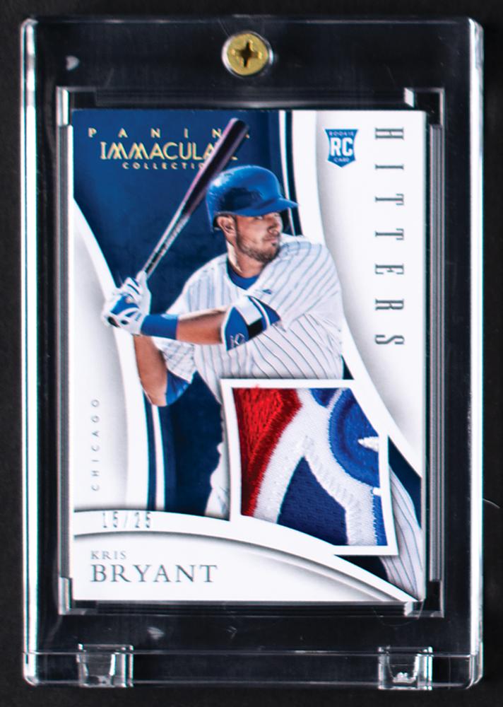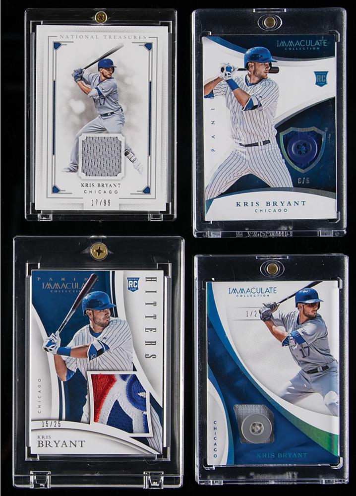 Four ultra-limited, fantastic relic/patch baseball cards of Chicago Cubs phenom Kris Bryant: