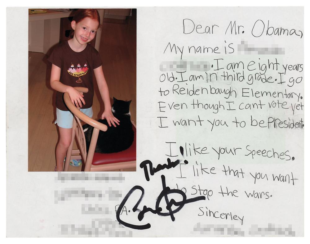 Obama autographs for an 8-year-old supporter