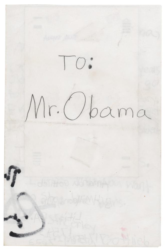 Felt tip signature, "Thanks! Barack Obama," on an off-white 11 x 8.5 sheet containing a handwritten letter addressed to Obama by a young fan hoping that he becomes president; a photo of the recipient is affixed to the left side. In fine condition, with light handling wear and a central vertical fold. The consignor notes that the autograph was obtained after an Obama campaign rally at Buchanan Park in Lancaster, Pennsylvania, on September 4, 2008.