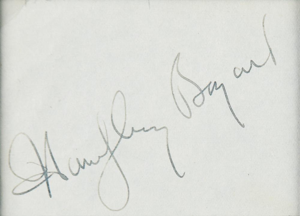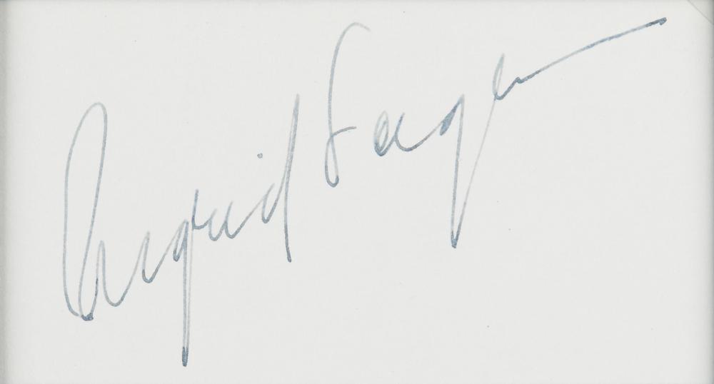Attractive pairing of vintage fountain pen signatures, "Humphrey Bogart" and "Ingrid Bergman," on individual off-white slips, nicely double-matted along with a reprinted Casablanca lobby card to an overall size of 21 x 20. In fine condition. A sought-after autograph display from one of Hollywood's greatest romantic dramas.