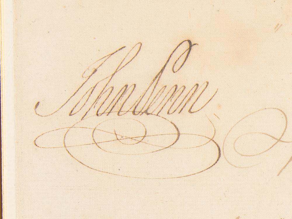 Manuscript DS, signed "Signed by the Order of the House, B. Franklin, Speaker," six pages, 7.5 x 12.5, September 22, 1764. A supplement to the act entitled "An Act for granting to His Majesty the Sum of Twenty Four Thousand pounds for the Defense and Protection of this province and for other purposes herein mentioned," which is signed neatly at the conclusion by Benjamin Franklin as Speaker of the Pennsylvania Assembly, and countersigned on the first page by John Penn as Governor of the Province of Pennsylvania.