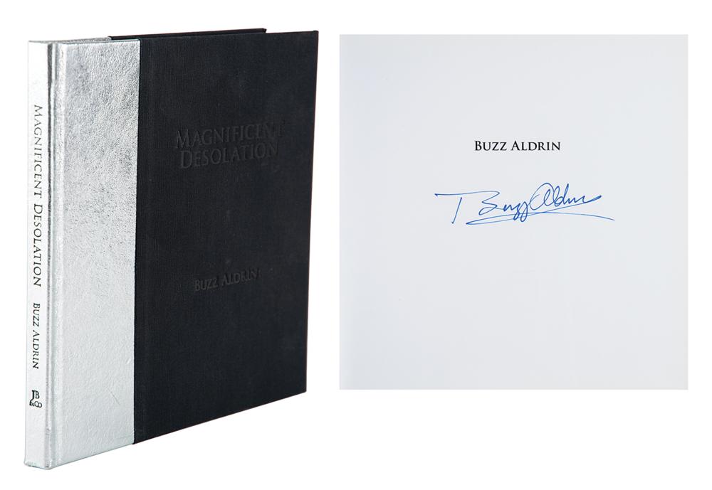 Signed book: Magnificent Desolation: Images from the Apollo 11 Lunar Mission with the Words of Astronaut Buzz Aldrin. First edition, limited issue, numbered 8/500. Reno, NV: Jack Bacon & Company, 2009. Hardcover, 8.25 x 8.25. Signed on the author's prefatory page in blue felt tip, "Buzz Aldrin." An extraordinary collection of more than 50 photographs from the historic Apollo 11 mission interspersed with the words of Aldrin, this volume was privately printed and differs from Aldrin's similarly titled autobiography. In very fine condition.