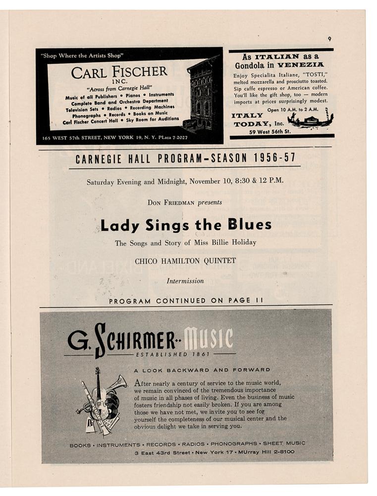 Billie Holiday 1956 Carnegie Hall Program