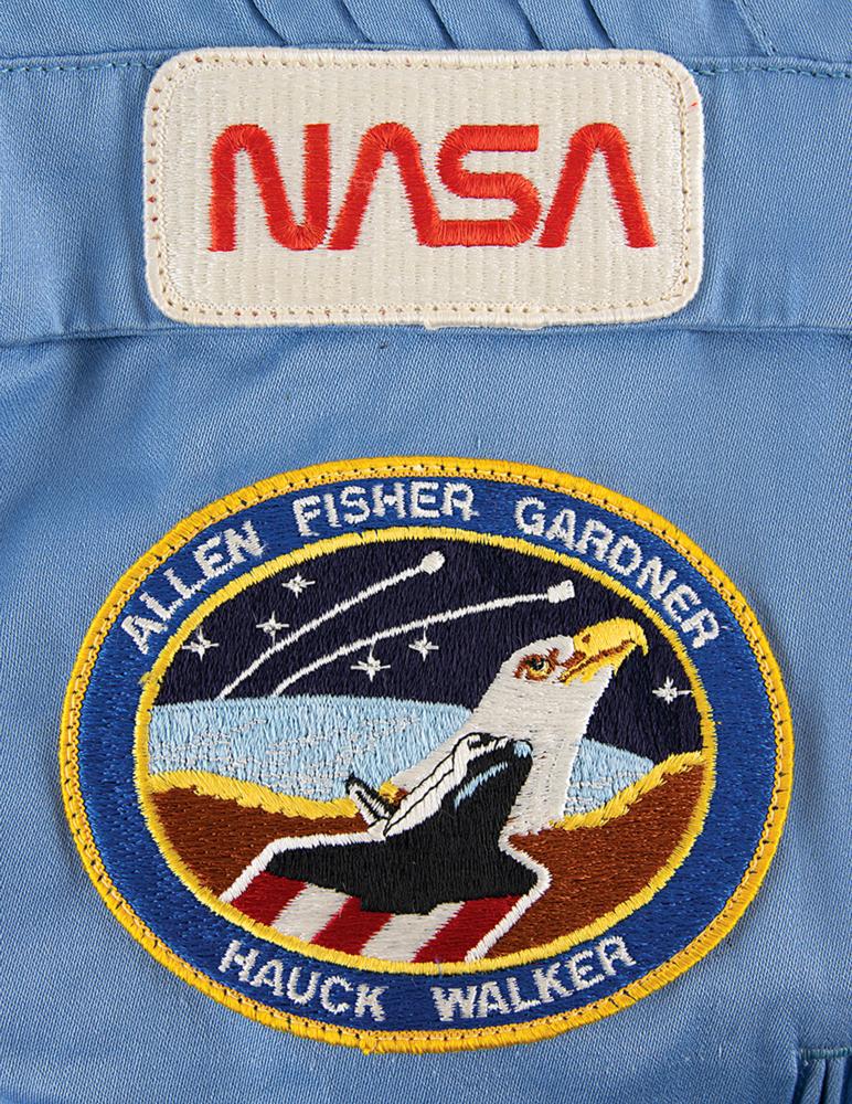 STS-51-A launched from Kennedy Space Center on November 8, 1984, and returned 7 days, 23 hours, and 44 minutes later on November 16th. During the flight, the Space Shuttle Discovery completed 127 orbits of Earth and logged over 3.2 million miles. Dale Gardner flew as a mission specialist, and-with Joe Allen-performed two spacewalks during the flight to retrieve the malfunctioning communications satellites Palapa B2 and Westar 6. These untethered EVAs marked the final use of the Manned Maneuvering Unit (MMU) propulsion pack, which was judged to be too risky to use after the Challenger disaster. A super desirable, flight-worn suit from Gardner's historic week-long stint in orbit.