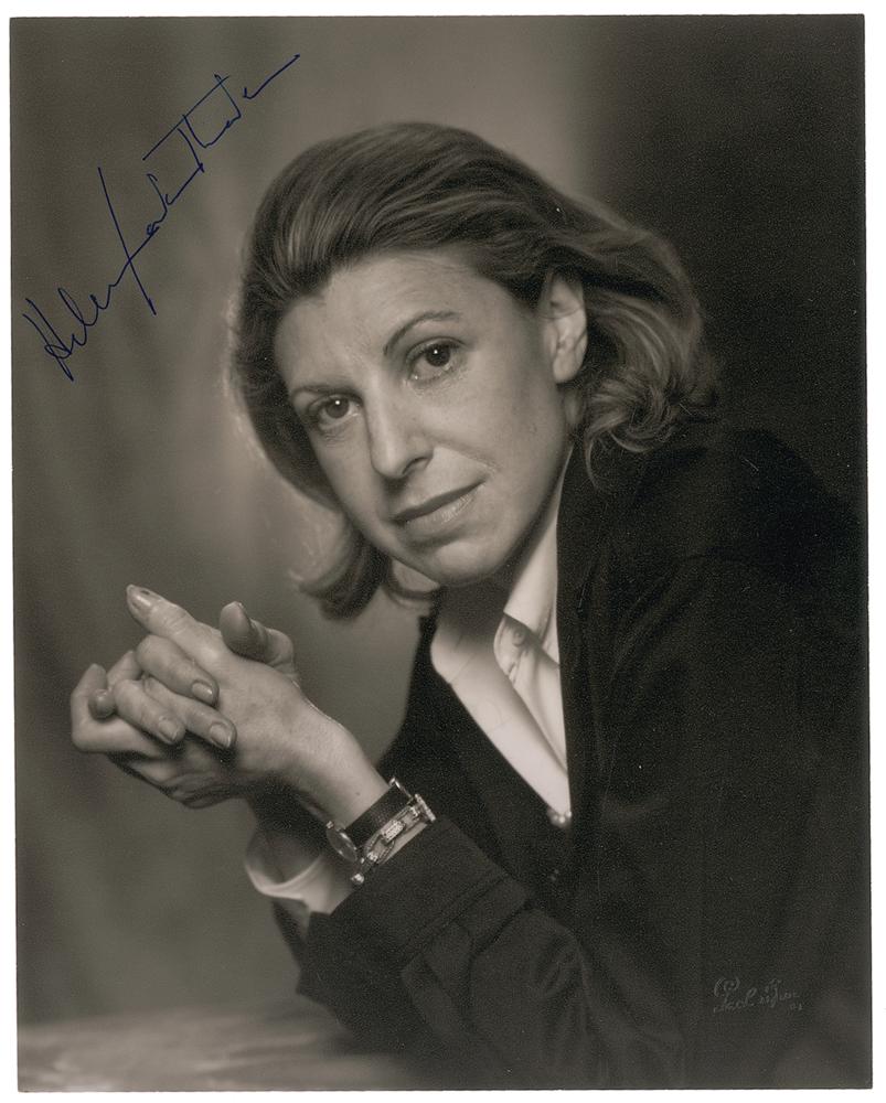American abstract expressionist painter (1928-2011) who was a major contributor to the history of postwar American painting for over six decades. Attractive matte-finish 8 x 10 portrait of Frankenthaler, signed in the upper left in blue ink. Blindstamped in the lower right by Pach Bros. In fine condition. Taken by Oscar White, president of the Pach Brothers corporation, this is Frankenthaler's official photo for the American Academy of Arts and Letters.