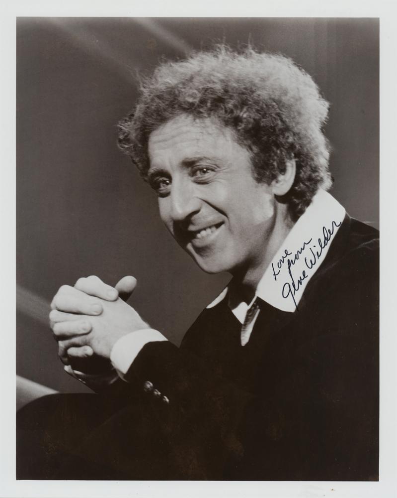 Nice glossy 8 x 10 photo of Wilder smiling, signed in black felt tip, "Love from Gene Wilder." In fine condition.