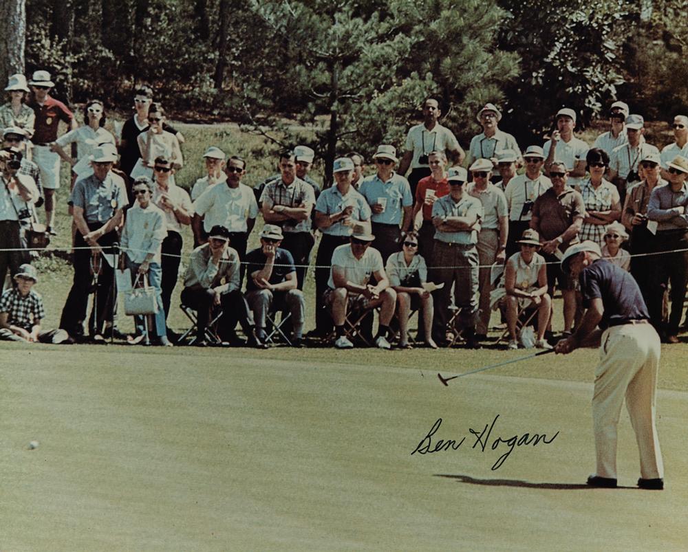 Color glossy 10 x 8 photo of Ben Hogan putting on the green, signed in thin black felt tip. In fine condition.