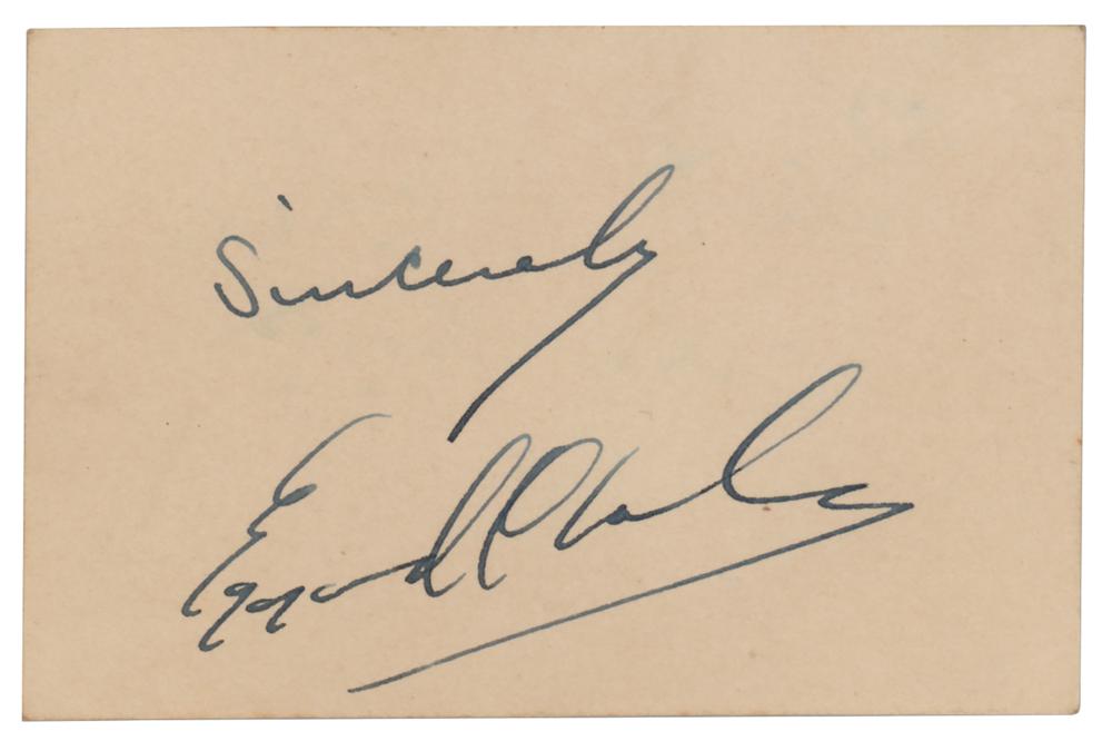 Fountain pen signature, "Sincerely, Ezzard Charles,” on an off-white 3.75 x 2.25 card. In fine condition