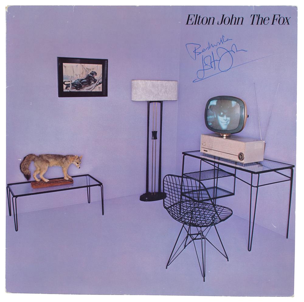 The Fox album by Elton John, who has signed the front cover in blue ballpoint, "Best wishes, Elton John." In fine condition, with scattered small surface gouges. The record is not included.