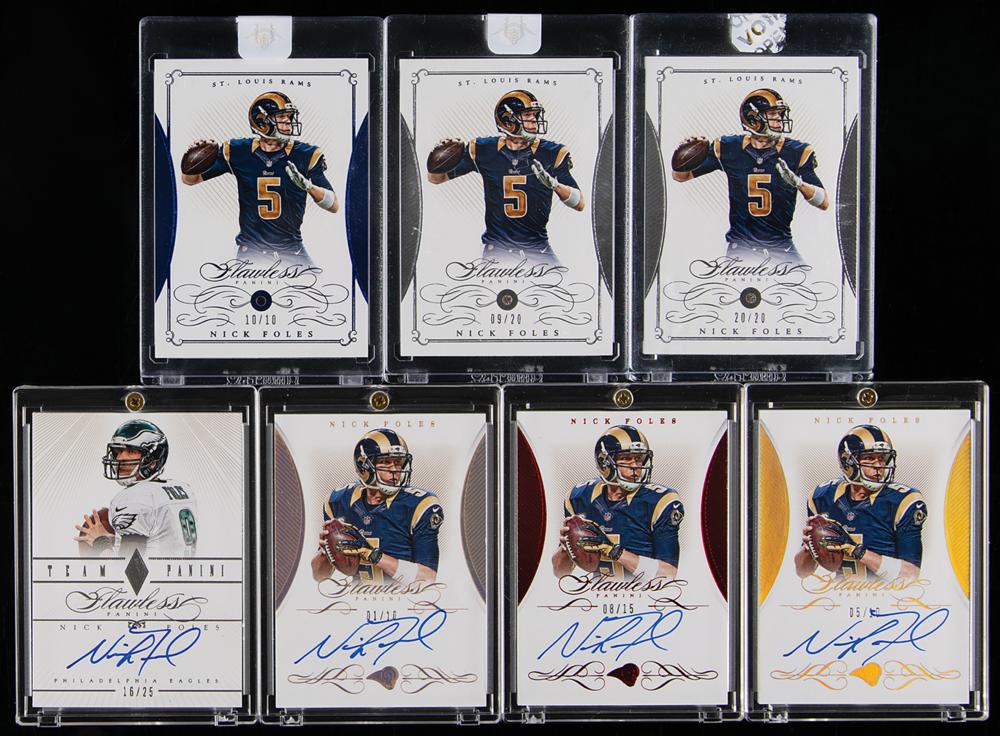 Nice lot of seven Panini Flawless Nick Foles cards, highlighted by four autographs of the Philadelphia Eagles' playoff hero:
