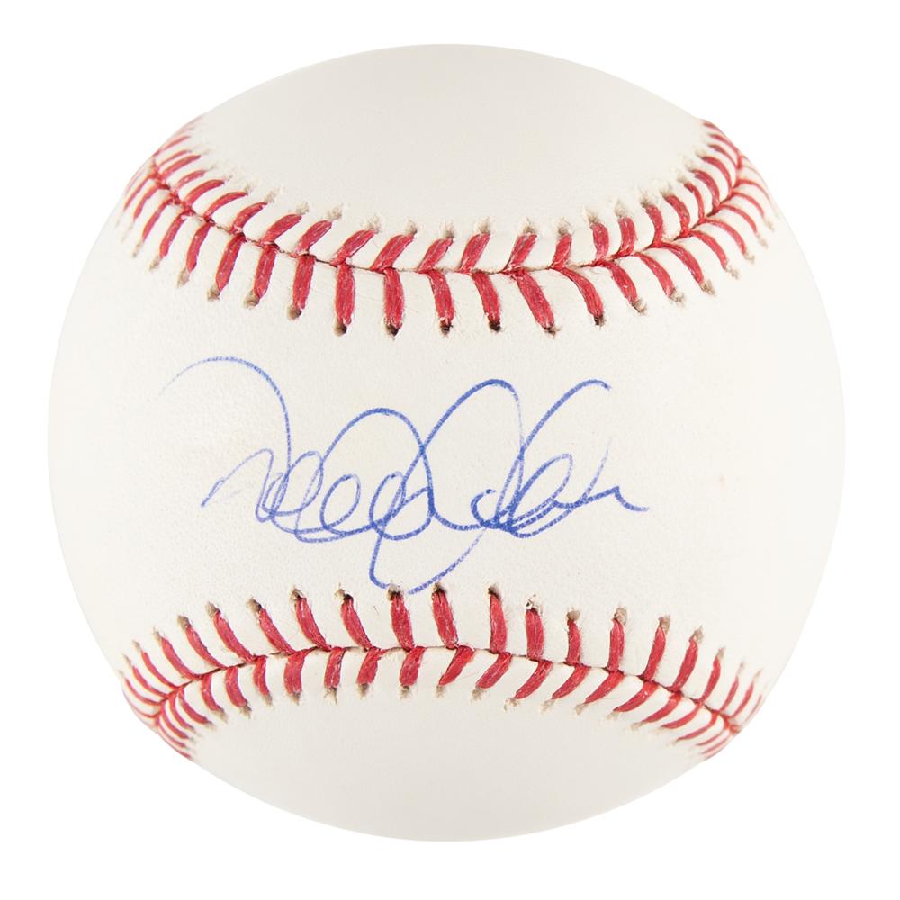 Official Rawlings Major League (Selig) baseball signed in blue ballpoint on the sweet spot by Derek Jeter. In very fine condition, with MLB and Steiner holograms affixed to the rear. Accompanied by a certificate of authenticity from Steiner Sports.