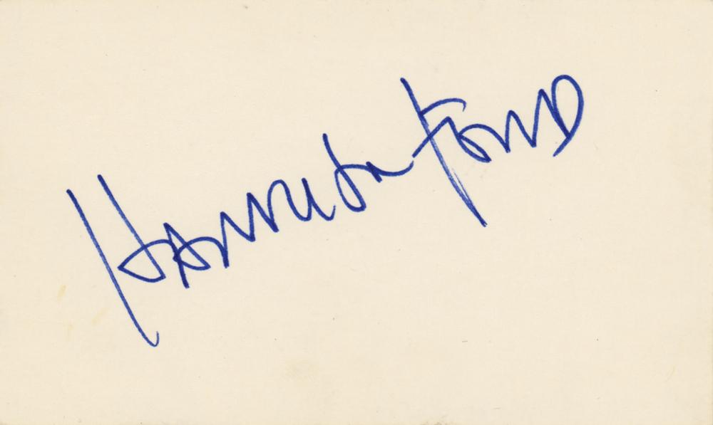 Early felt tip signature, “Harrison Ford,” on a off-white 5 x 3 card. In very fine condition.